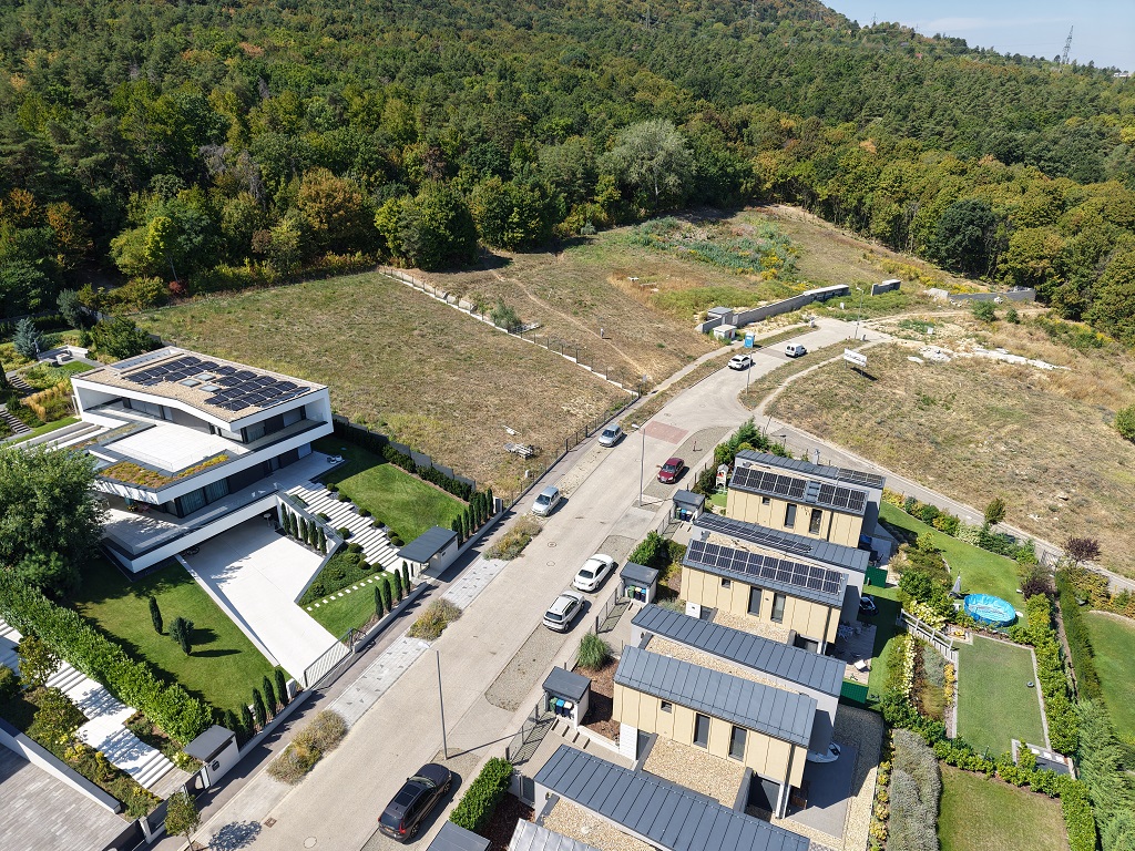 A terület teljes közművesítéssel, föld alatti csapadékvíz elvezetéssel, aszfaltozott utcákkal és 20% beépíthetőséggel rendelkezik, ami hosszú távon biztosítja a zöldövezeti karakter megőrzését.