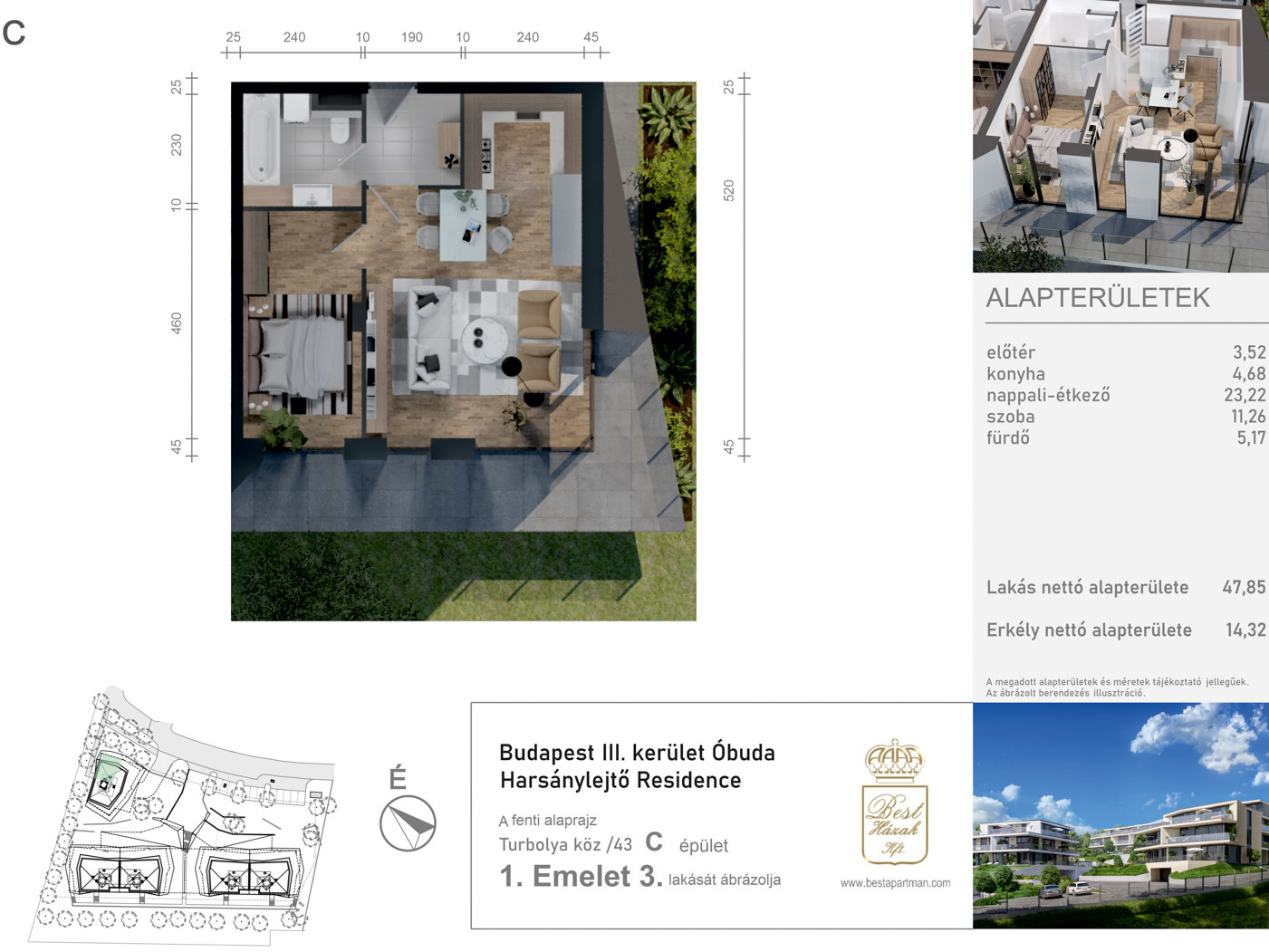 Óbuda, Harsánylejtő Residence – B2. épület 3. lakás / 52,34 m² / 1 szoba