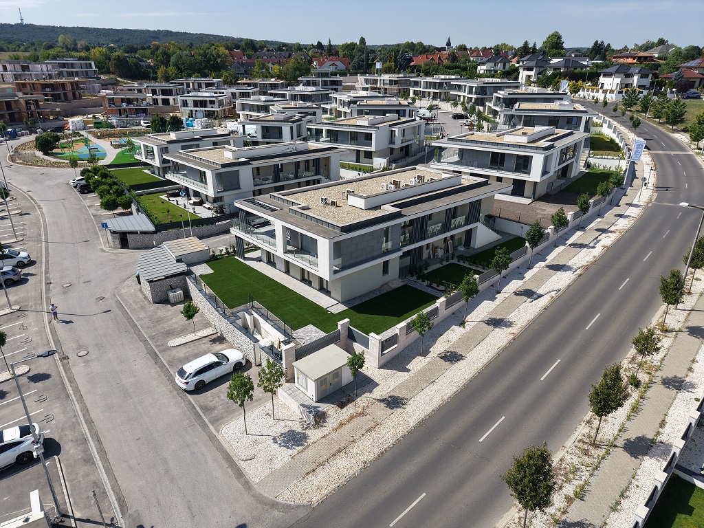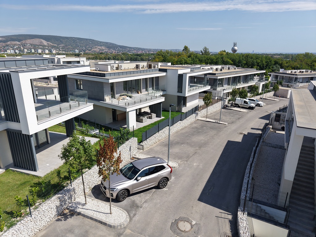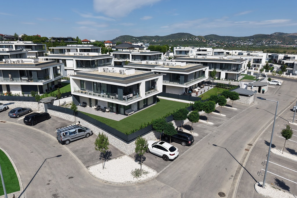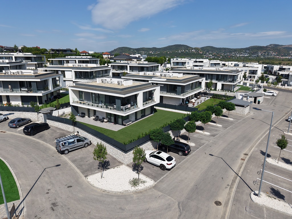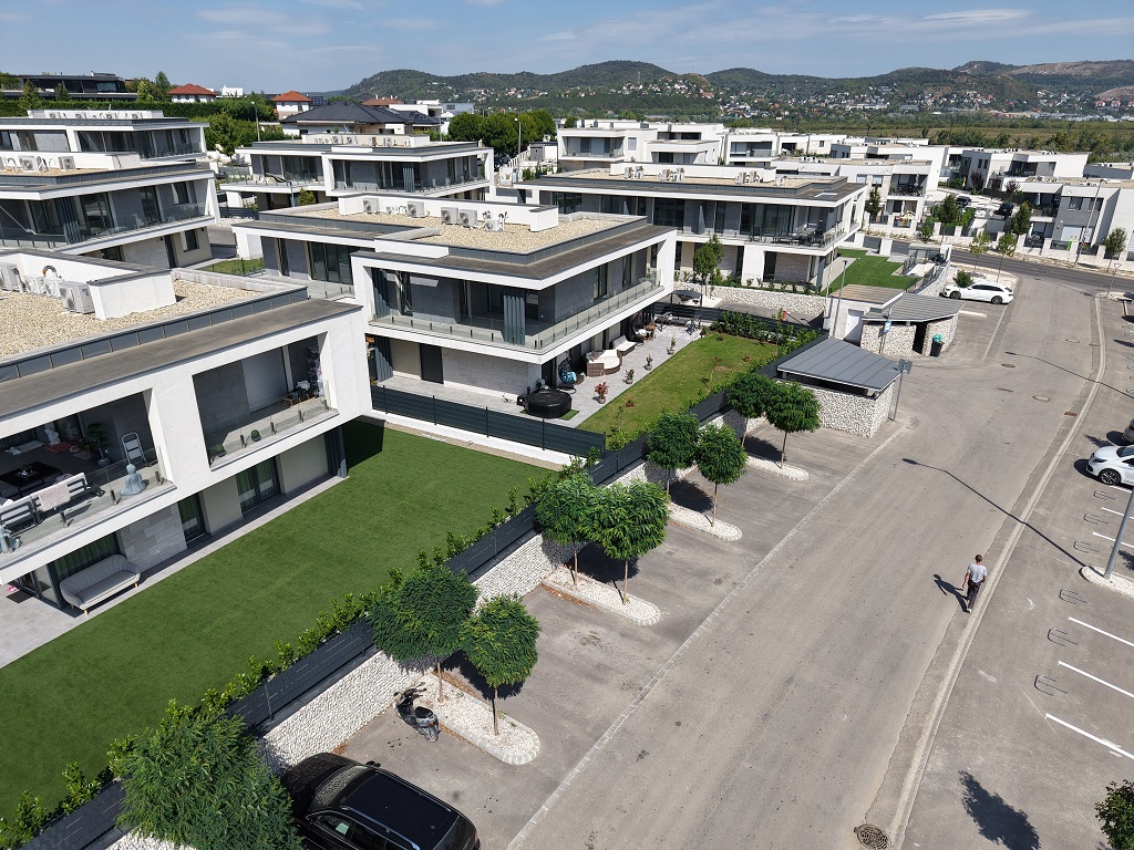 Az ingatlanok négy és kétlakásos épületekben, 70 -109 m2 között elérhetőek, kizárólagos kertkapcsolattal, vagy emeleti nagyméretű, akár 115 nm panorámás terasszal. A kertek öntözőrendszerrel, füvesítve, babérmeggyel beültetve kerülnek átadásra. Panorámás 168-175 m2-es Ikerházak garázzsal, saját parkosított kerttel, automata alu redőnnyel, szúnyoghálóval.