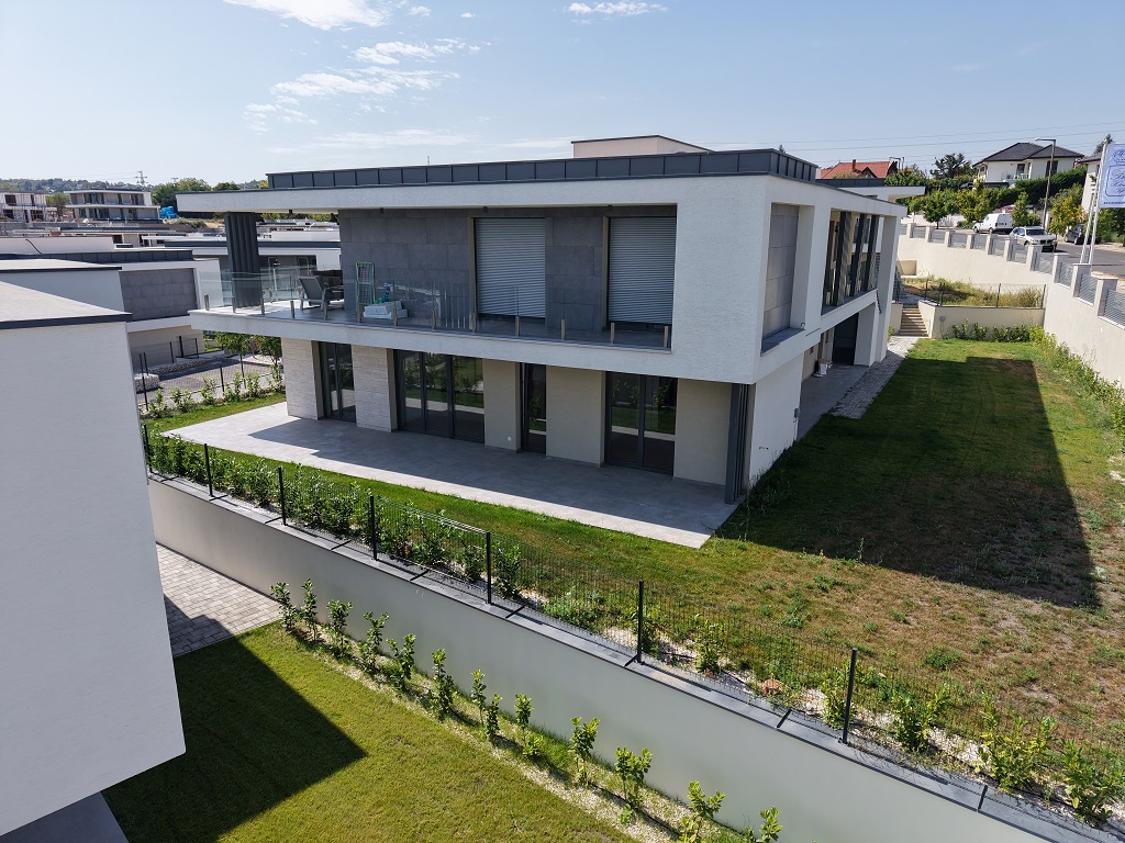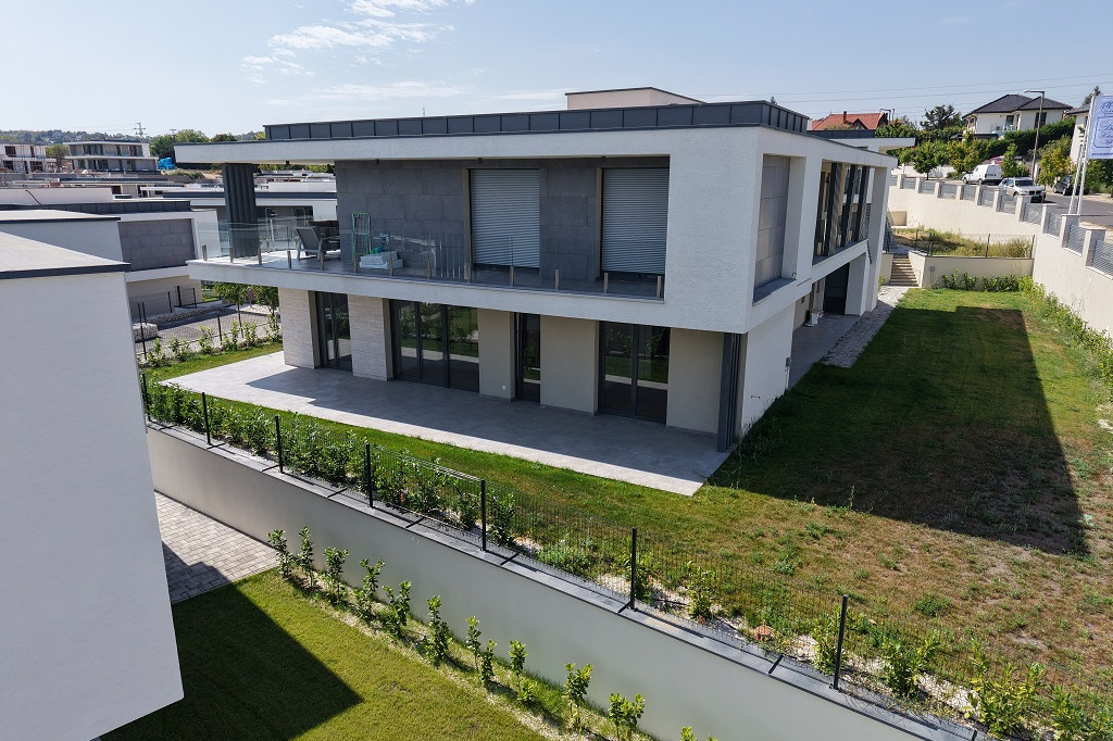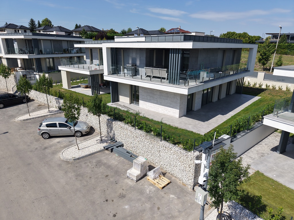 terasz 90 m2, saját kert 431,61 m2, 2 gépkocsi számára felszíni parkoló